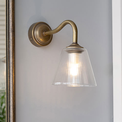 Newton Fluted Bathroom Wall Light with Byron Arm in Antiqued Brass